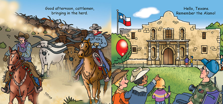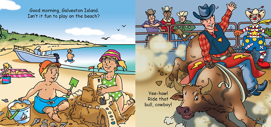 What could be more fun than learning about the great state of Texas while soaking in the sudsy tub? Bath Time Texas features rodeos, Big Bend National Park, Grapevine Vintage Railroad, Galveston Island, Space Center Houston, Dallas Aquarium, San Antonio Riverwalk, and more.