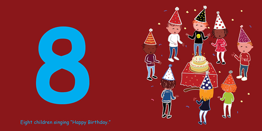 Happy birthday! This adorable board book will have little ones squealing with delight as they count all of their favorite birthday activities including cake, party foods, candles, family and friends, gifts, balloons, decorations, birthday hats, games, activities, prizes, entertainment, music, and more.