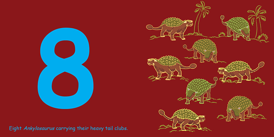 What could be more fun than learning to count with dinosaurs? This adorable board book will have little ones squealing with delight as they count all of their favorite dinos including T-rex, Brontosaurus, Stegosaurus, Spinosaurus, Gallimimus, Triceratops, Parasaurolophus, Velociraptor, and more.