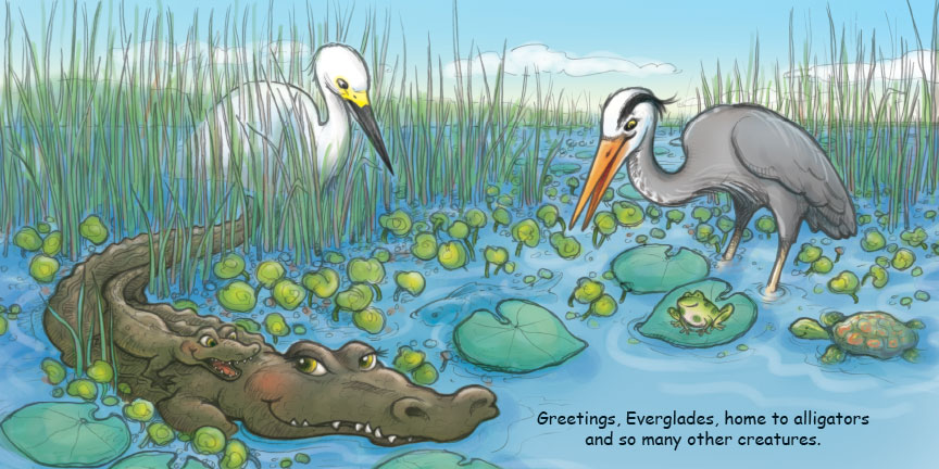 Good Night America explores the Everglades, Niagara Falls, the Grand Canyon, redwood forests, Statue of Liberty, Washington DC, Mississippi River, Golden Gate Bridge, farms, bison, bears, sea lions, cowboys, tropical islands, and more. Young children are invited to explore the wonders of America’s most iconic landmarks and attractions before bedtime with this beautifully illustrated board book.