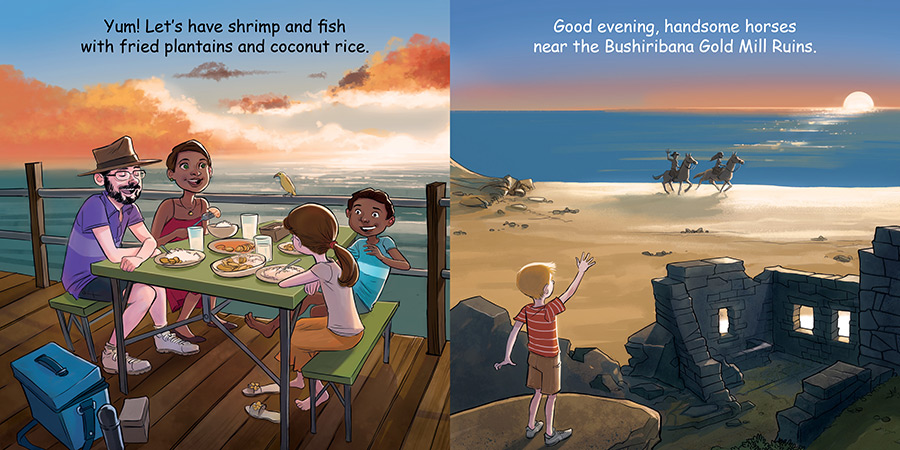 Good Night Aruba includes island beaches, coconut palm trees, snorkeling and scuba diving, boating, tropical fish and coral reefs, Natural Bridge, Butterfly Farm, Donkey Sanctuary, Natural Pool, Philip’s Animal Garden, and more. Aruba is one happy island. This tropical board book tours young readers around the scenic island to visit Aruba’s iconic landmarks and fun attractions.