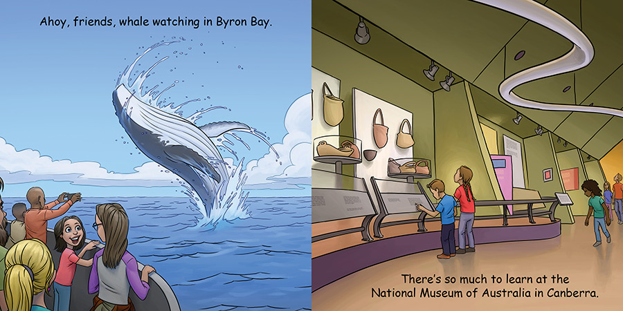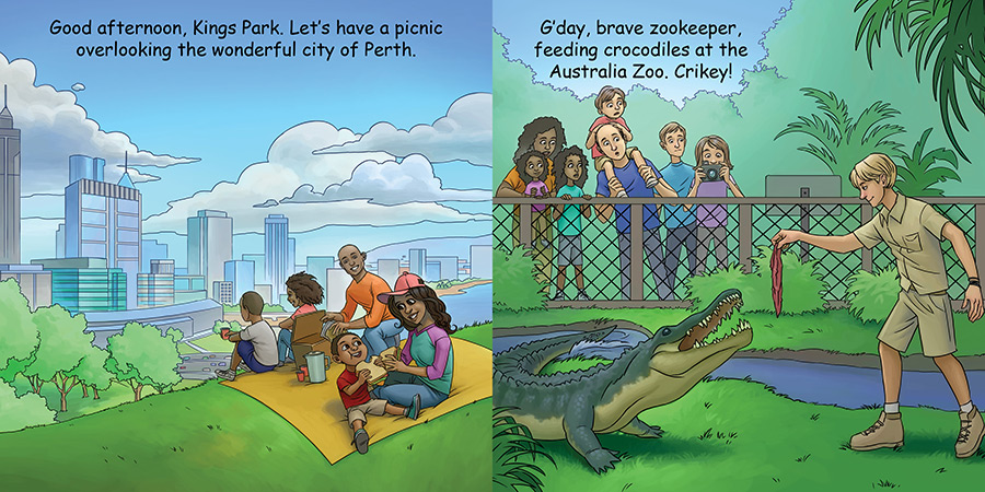 Good Night Australia explores Sydney Harbour, Great Ocean Road, the Australia Zoo, Mindil Beach, the Great Barrier Reef, Adelaide Oval, Uluru, Kings Park, Salamanca Market, wildlife, and more. Crikey, mates! Little Aussies get a spectacular tour of the wildlife and attractions “Down Under” in this educational and engaging board book. Children will be lulled to sleep as they travel from the beautiful coasts to the famous outback.