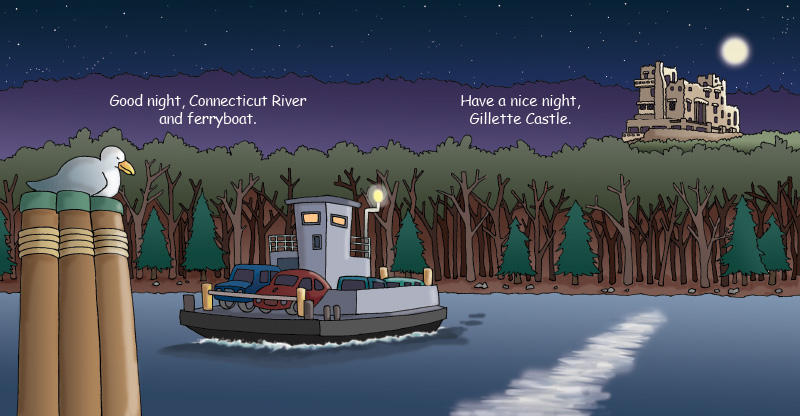 Good Night Connecticut features Long Island Sound and the coast, tall ships of Mystic Seaport, Mystic Aquarium, Dinosaur State Park, Essex Steam Train, Mark Twain House and Museum, Lake Compounce, old stone walls, USS Nautilus,Connecticut River and ferry boats, Gillette Castle, Huskies, and more. This delightful nighttime board book gives young readers an upfront and personal tour of the state’s most scenic attractions and landmarks. Go Huskies!