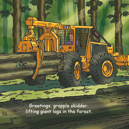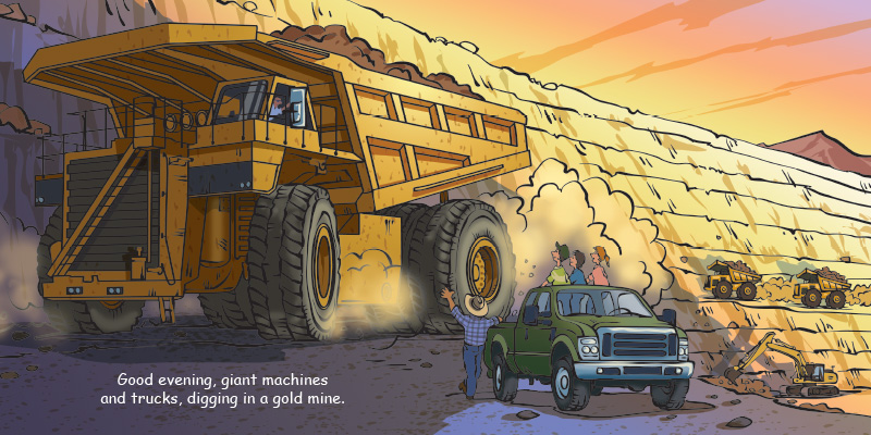 Good Night Dump Truck features dump trucks, bulldozers, front loaders, excavators, lowboys, tipper trucks, pavers, grapple skidders, giant tires, cement mixers, cranes, haulers, snowcats, and more. Put on your hard hat and get busy digging! Children will have fun learning about all their favorite contruction trucks and machines.