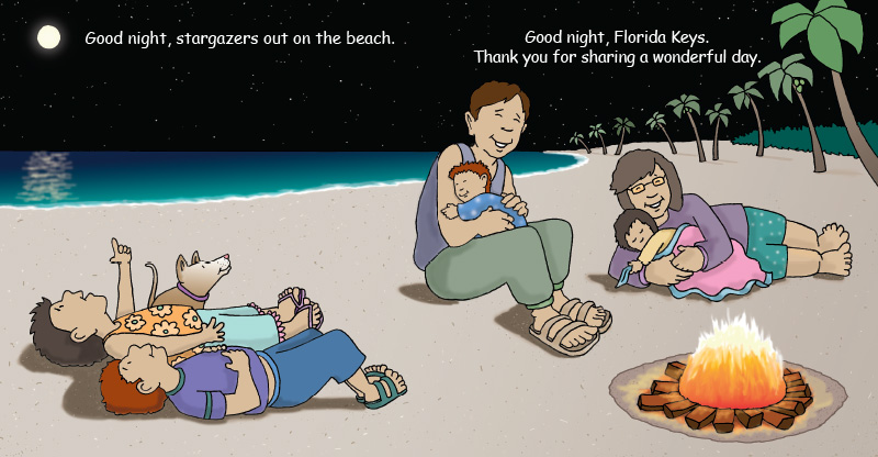 Good Night Florida Keys features conch shell blowing, boating, fishing and diving, Seven Mile Bridge, Bahia Honda State Park, Fort Jefferson, Key deer, Mallory Square, Duval Street, treasure hunting, sea life, key lime pie, calypso music, and more. This adorable board book invites little ones to explore all the sights, sounds, and tastes the Florida Keys has to offer.
