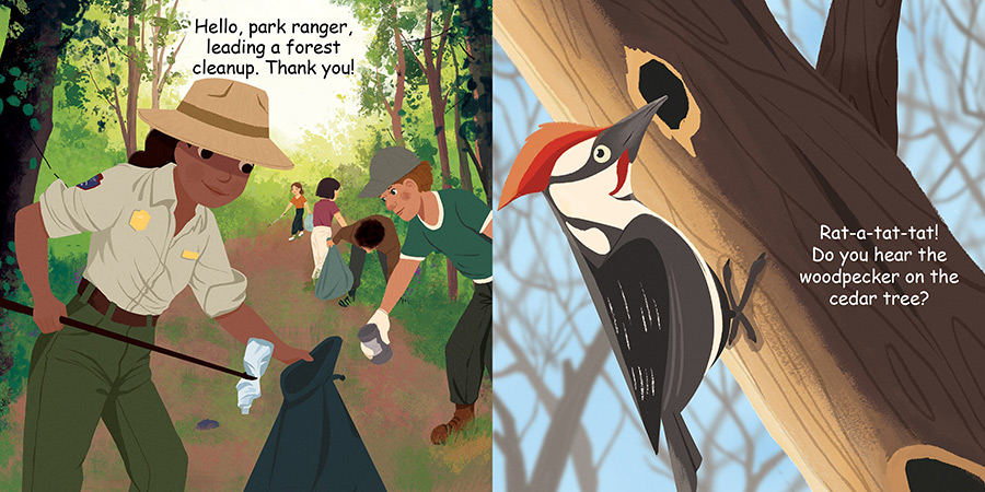 Good Night Forest explores maple trees, oak trees, evergreens, and redwood trees, along with hiking trails, fall foliage, snowy forests, pine cones, animals, black bears, squirrels, woodpecker, deer, and more! Put your hiking boots on and get ready to experience the seasons of the forest in this nature-filled bedtime story.