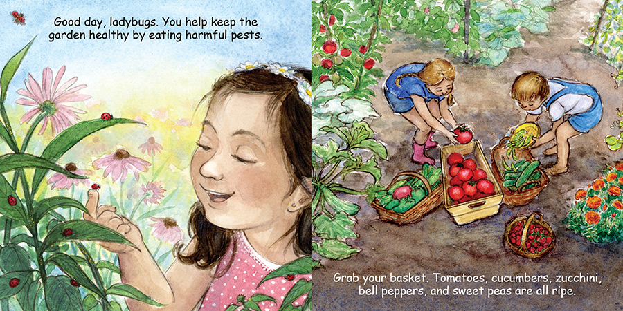 Grab your shovel and spade, it’s time to dig in the dirt! Little horticulturists will squeal with delight as they seed, plant, and harvest. This lovingly illustrated board book features flower gardens, vegetable gardens, tomatoes, cucumbers, squash, zucchini, corn, pumpkins, herbs, gardening tools, and more.