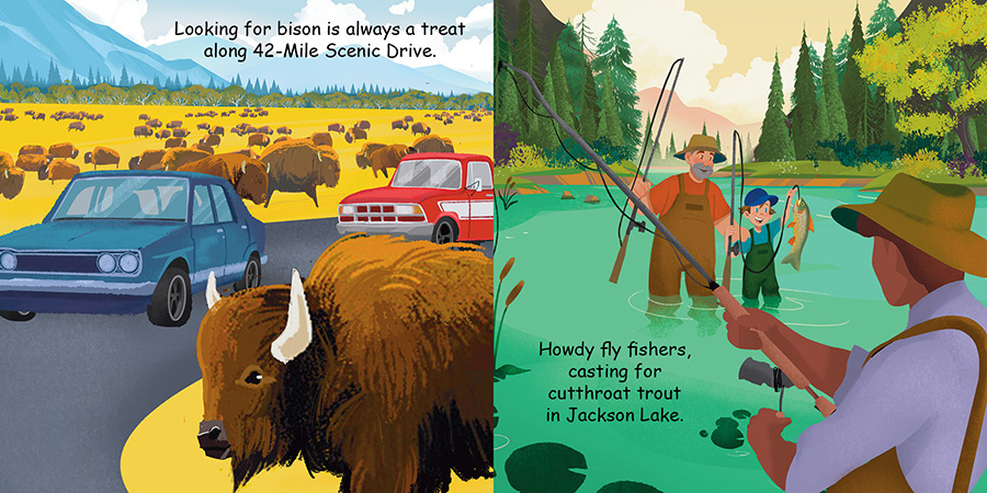 Little mountaineers will take a personal and educational tour of magnificent Grand Teton National Park, visiting its glorious landmarks and most visited attractions including 42-Mile Scenic Loop Drive, Jenny Lake Trail, Jackson Lake, Moose Wilson Road, Snake River Overlook, Signal Mountain Summit Road, mountain biking, rock climbing, camping, wildlife, park rangers, the visitors center, and more.