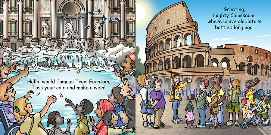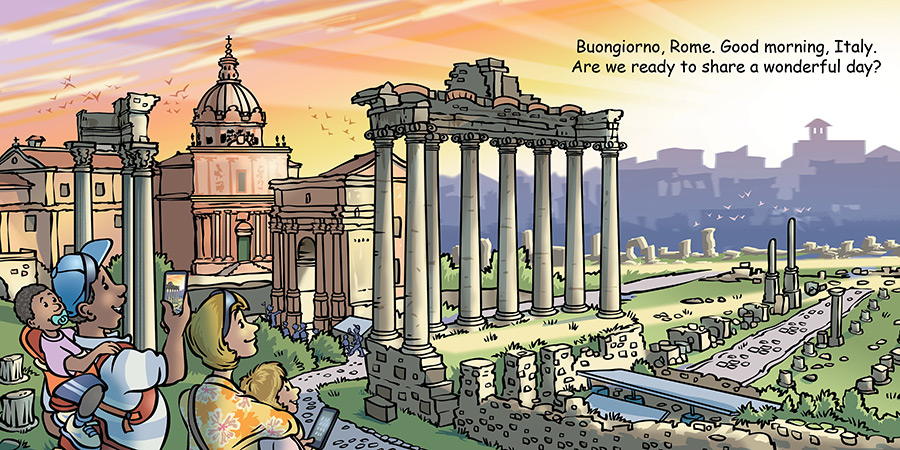 This charming board book takes young readers on an unforgettable journey around the glorious country of Italy. Little Italians will visit Italy’s famous attractions and historic landmarks including the Trevi Fountain, Colosseum, Roman Forum, Leaning Tower of Pisa, the Vatican, Tuscany, Florence, Naples, Venice, Naples, local foods, shopping, and more. Andiamo!