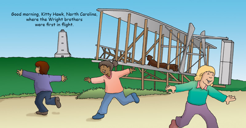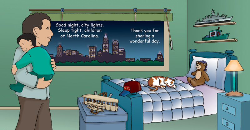 Good Night North Carolina highlights Roanoke Island, White Water Falls, Kitty Hawk and the Wright Brothers, North Carolina Museum of Natural Sciences, North Carolina Zoological Park, Great Smoky Mountains Railroad, Mile High Swinging Bridge, local foods, music, and more. Welcome to the Tar Heel State! Children will be taken on an epic journey across North Carolina, visiting, famous landmarks, sights, and attractions.