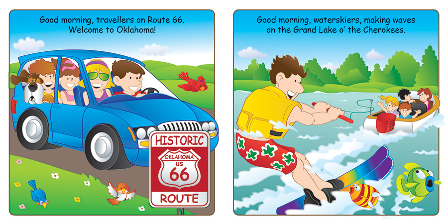 Good Night Oklahoma explores Wichita Mountains Wildlife Refuge, the State Capitol Building, the Oklahoma State Fair, the SkyDance Bridge, the Tulsa Zoo, the Stafford Air & Space Museum, and more. From Route 66 to the Grand Lake o’ the Cherokees to the Tallgrass Prairie Reserve, little Cowboys and Sooners fans alike will marvel at all this state has to offer.