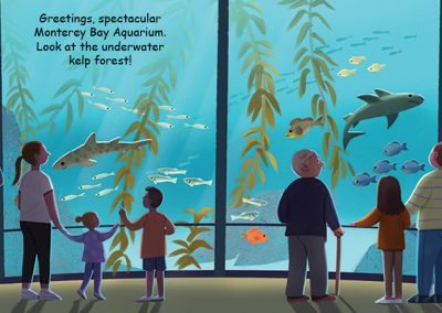 This adorable board book tours little ones around the fabulous region of Monterey Bay. Young readers will visit the area’s top attractions and historic landmarks including Old Fisherman’s Wharf, Pebble Beach, Monterey Bay Aquarium, Dennis the Menace Playground, Cannery Row, Carmel-by-the-Sea, Big Sur, whale watching, sea otters, and more.